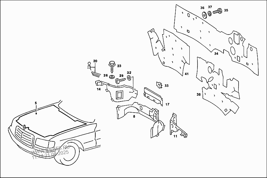 Mercedes Benz Insulation In Engine Compartment On Roof Rail And