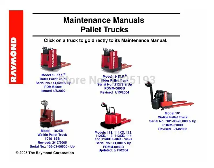 Raymond Maintenance Manual Pallet Trucks Truck Truck Pallet