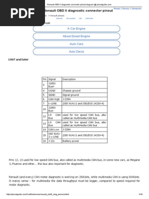 Renault Obd Ii Diagnostic Connector Pinout Diagram Pinoutguide