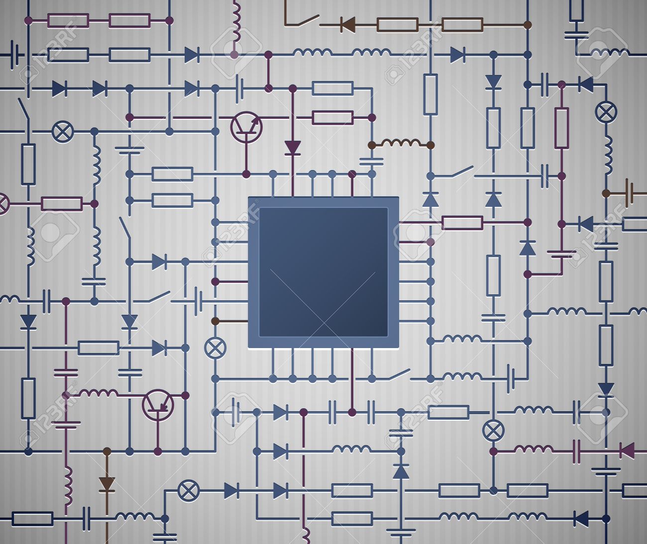 Background With An Electrical Circuit Diagram With Processor