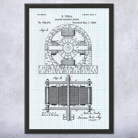 Framed Tesla Electromagnetic Motor Print Tesla Inventions Etsy