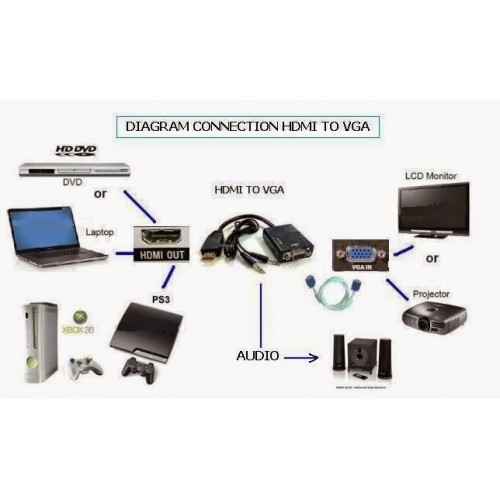 Hdmi To Vga Adapter Audio Video Cable Converter Hdmi Vga Connector