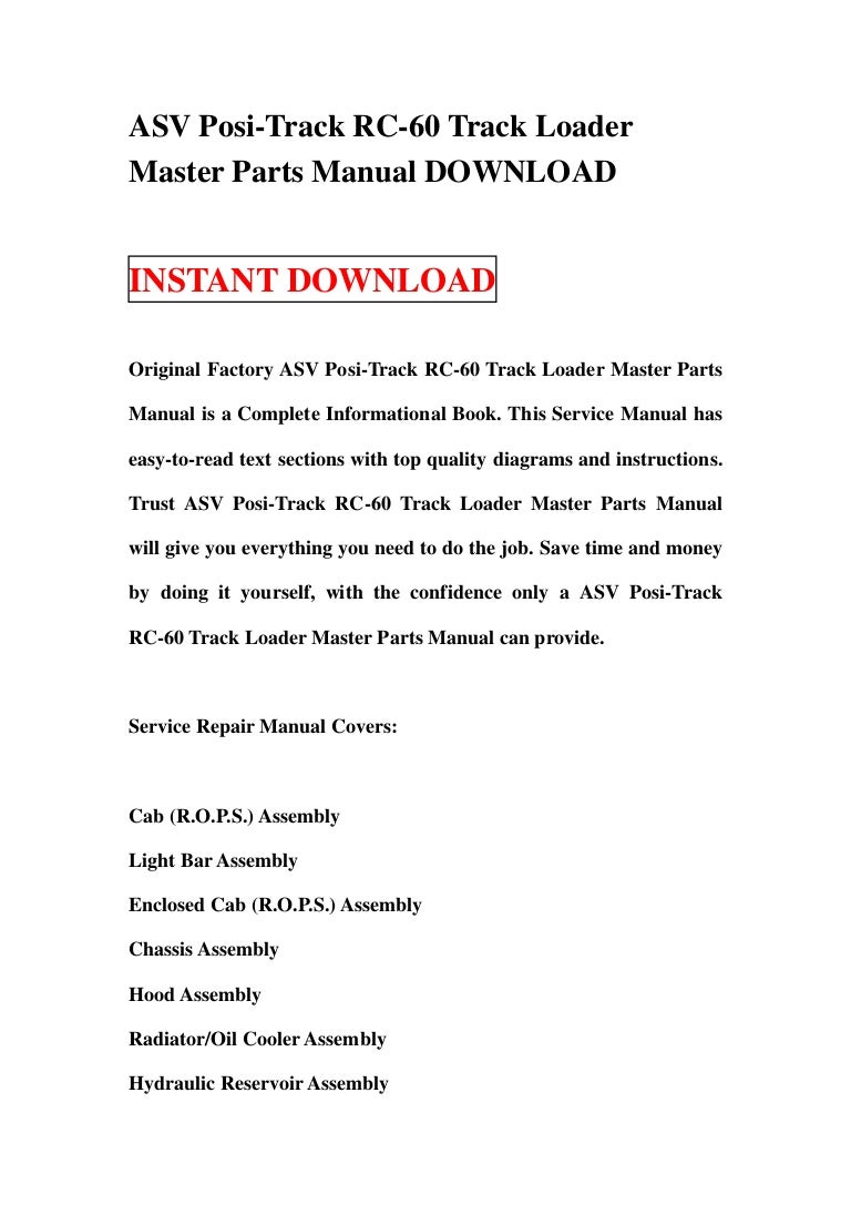 Asv Posi Track Rc 60 Track Loader Master Parts Manual Download
